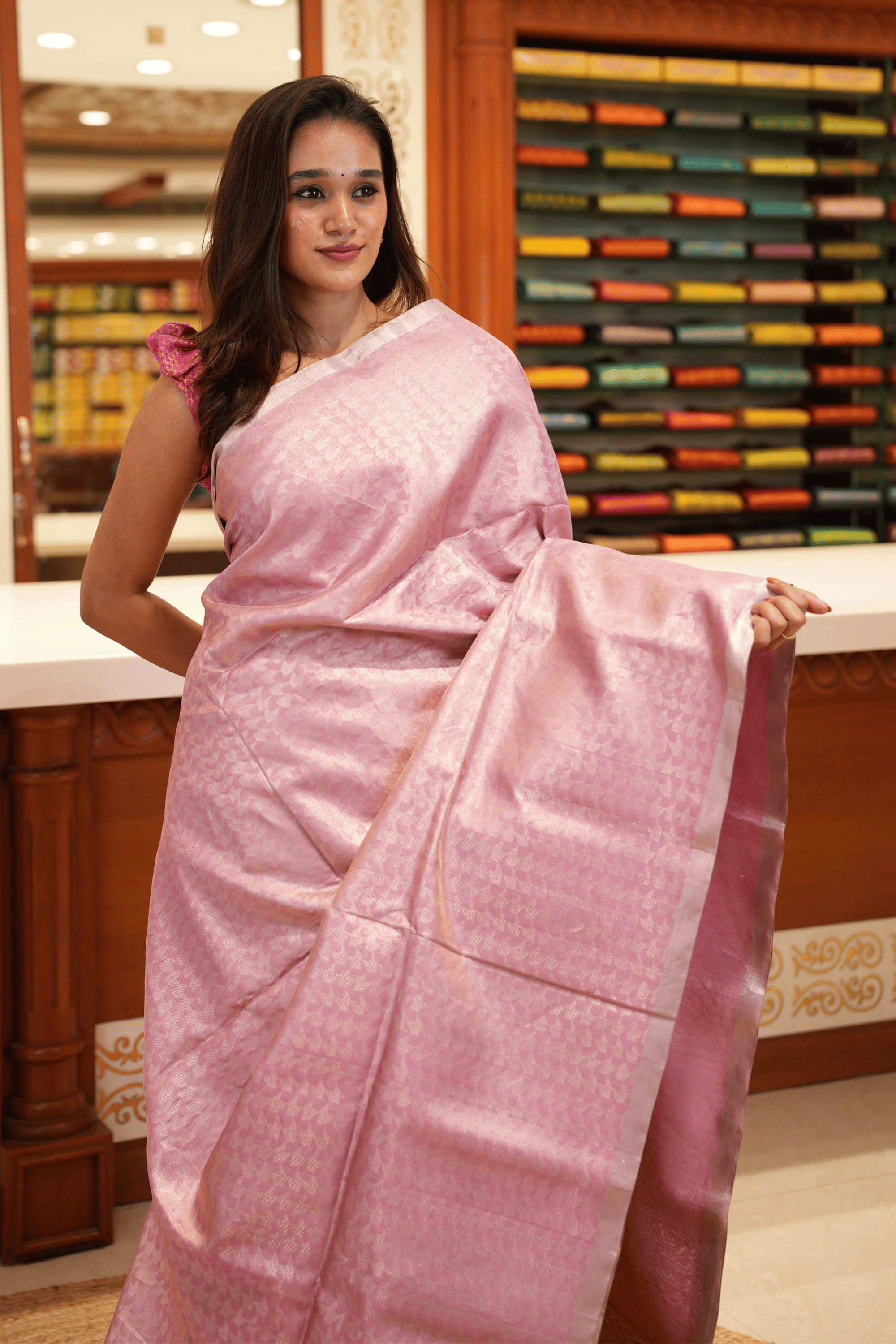 Mild zari folds from packing/handling.