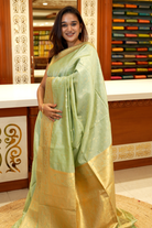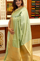 Pastel Pista Green Semi Banarasi Soft Silk Saree