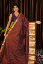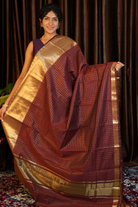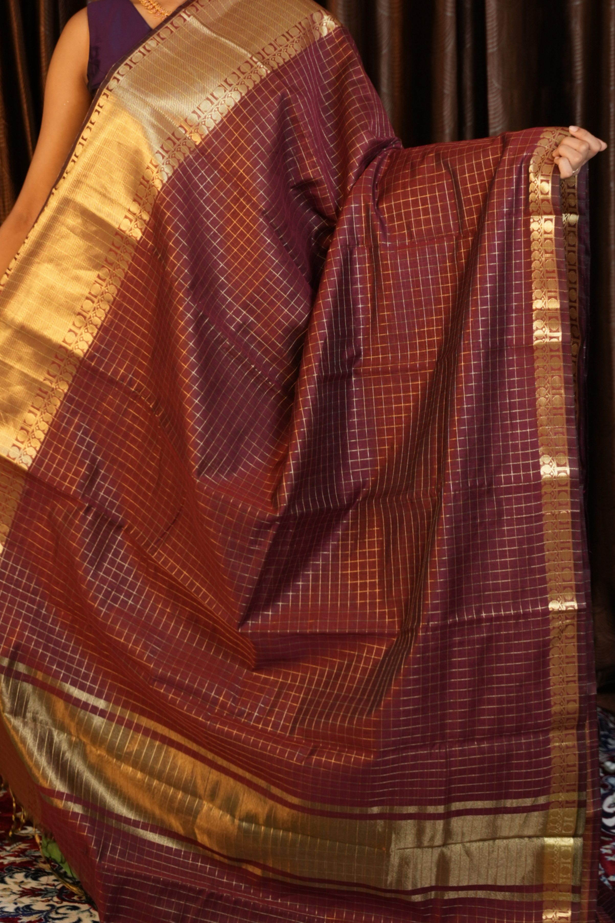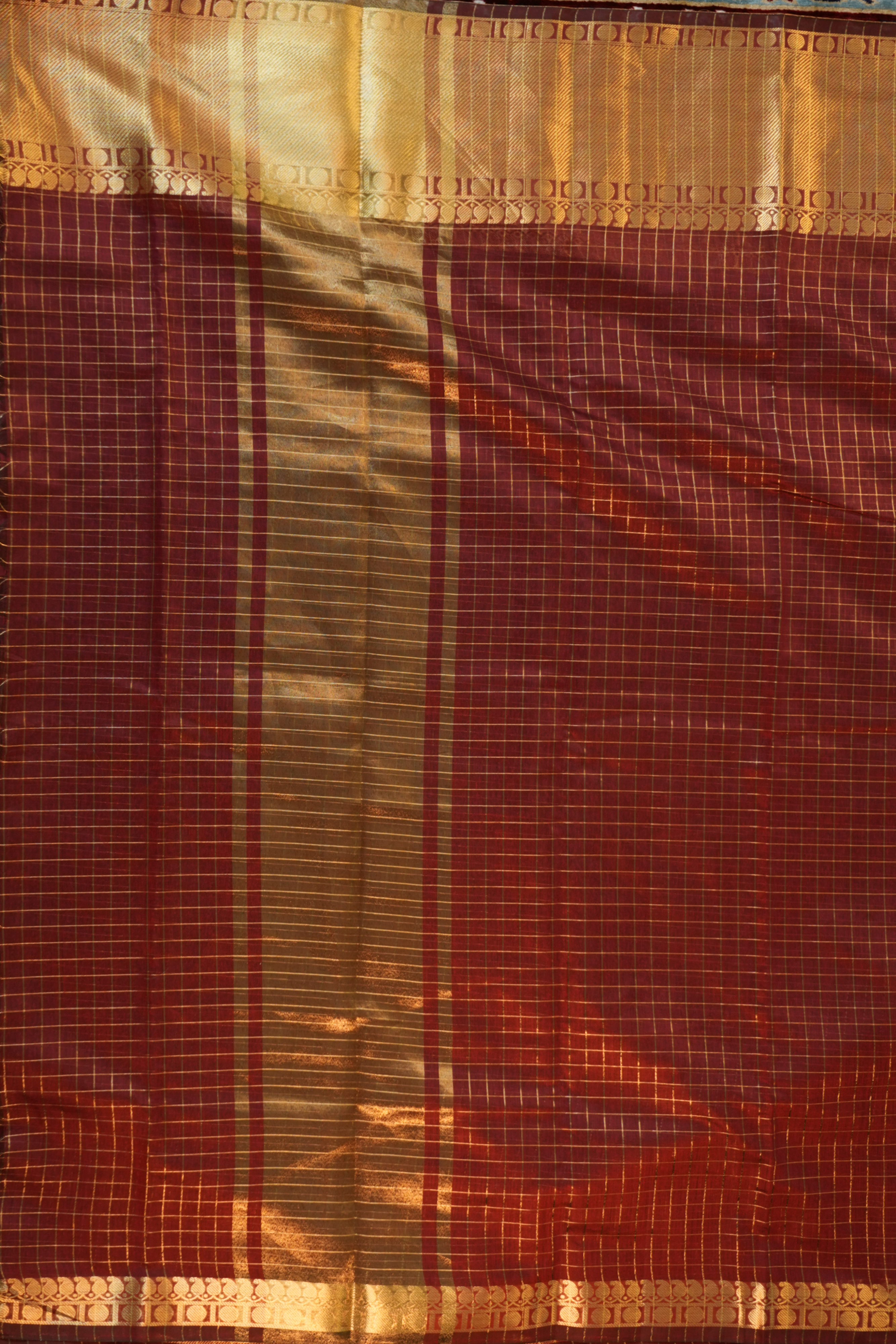 Motifs on Body: Fine Checked (Grid) Pattern in Gold Zari across the entire body