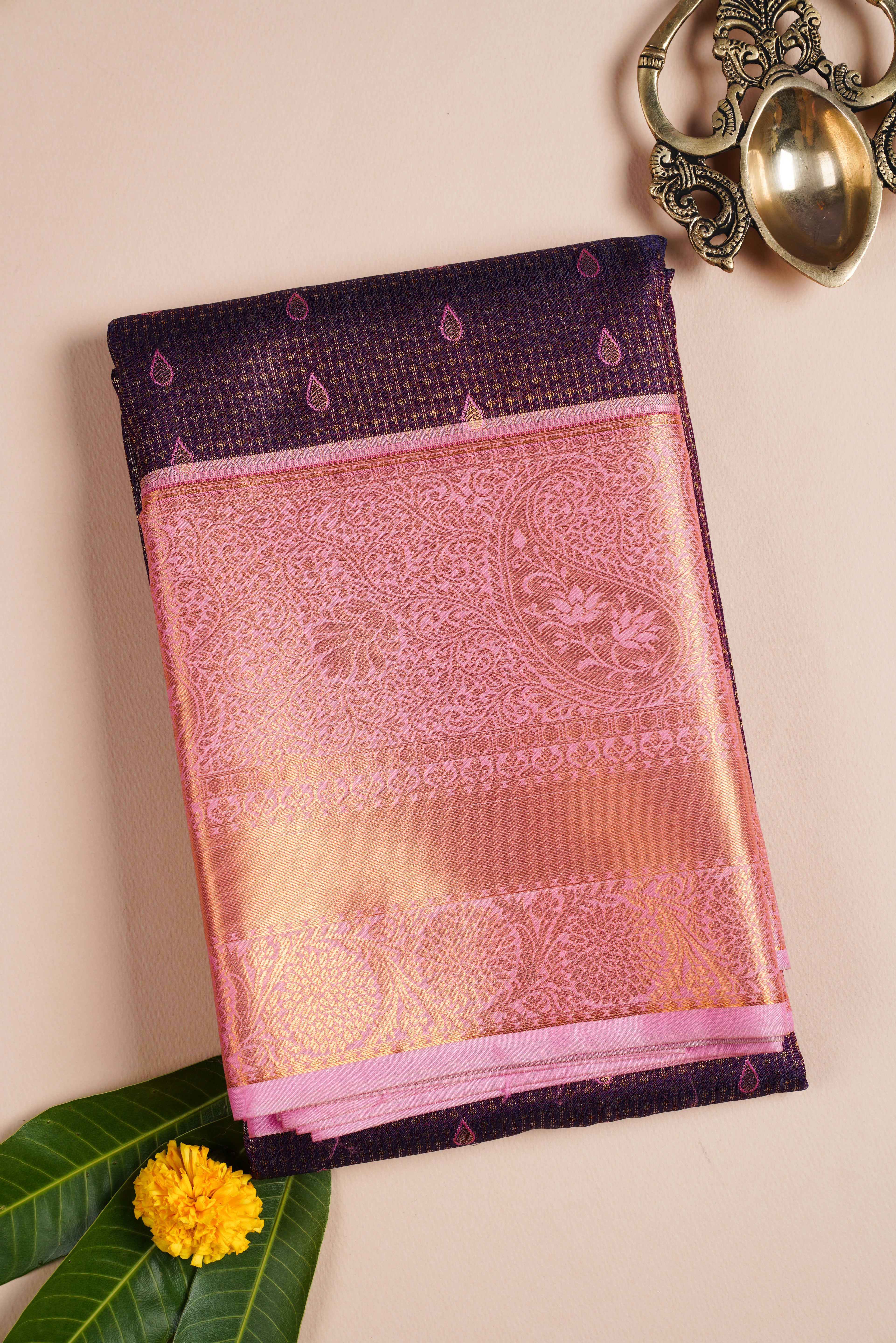 Jamun and Pink Semi Kanchi Saree
