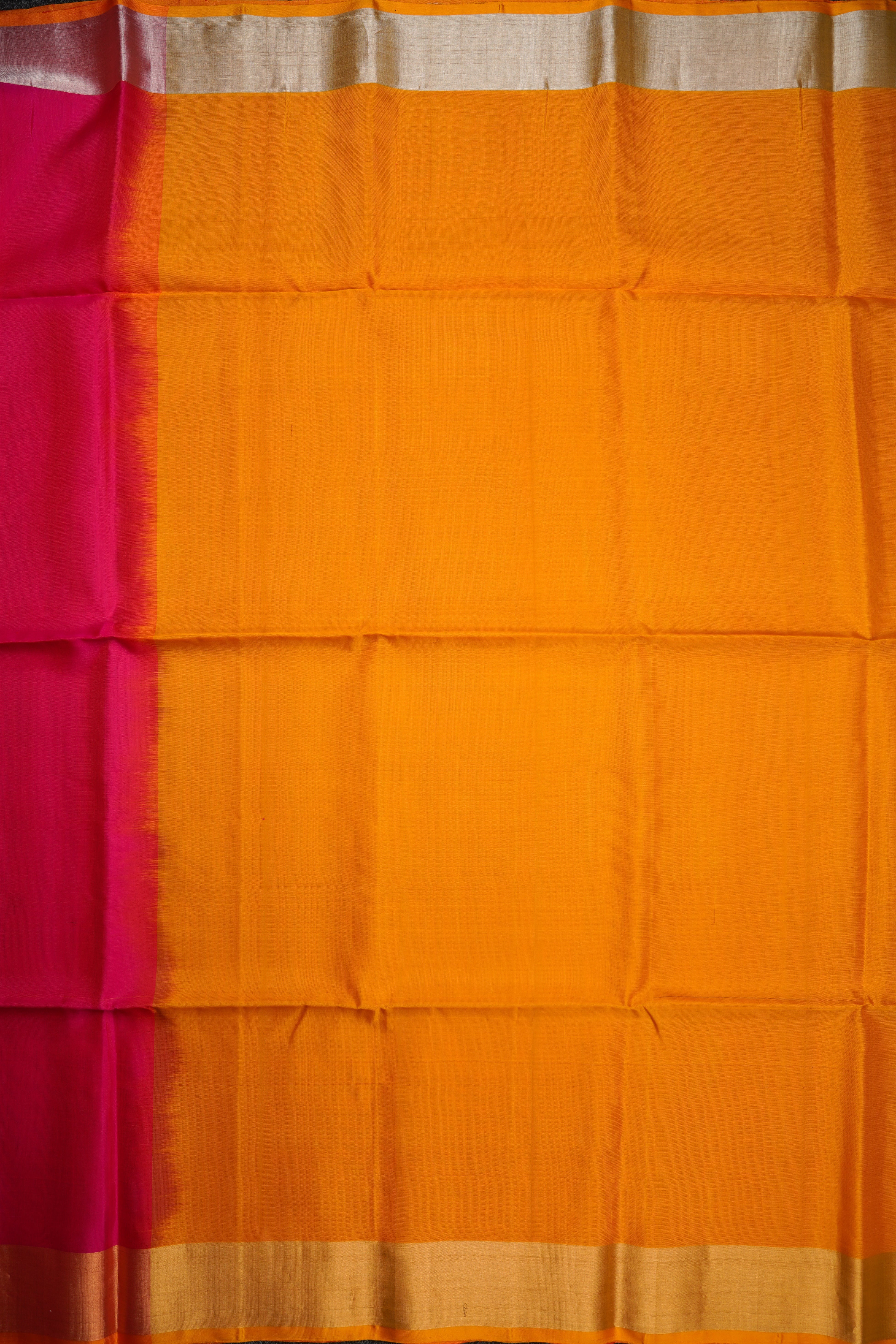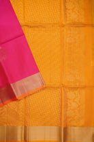 The Candy Pink Soft Silk Saree is paired with a striking mango yellow border and pallu, finished with playful tassels for added charm. Crafted in soft silk, it drapes beautifully with a graceful sheen, blending traditional appeal with a lively contrast.